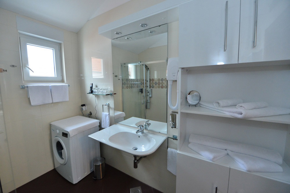 Luksuzno opremljena kupaonica svakako će pridonjeti da započnete dan s osmijehom na licu. Perilica rublja, pegla, daska za peglanje i usisavač neće pokvariti ugodan boravak na godišnjem odmoru.